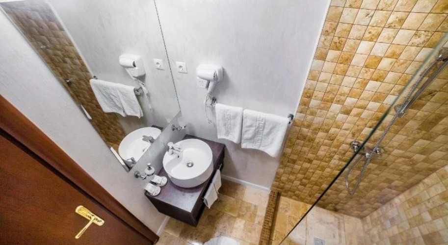 Номер уютно обставлен и оснащён необходимым, чтобы отдохнуть после долгого и насыщенного дня. Имеются душ, телевизор, мини-бар и тапочки. Перечисленные услуги есть не во всех номерах.