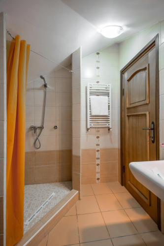 В номере вы найдёте душ и телевизор. Оснащение зависит от выбранной категории номера.