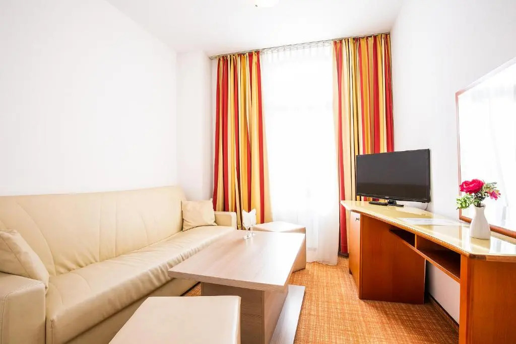 Номер уютно обставлен и оснащён необходимым, чтобы отдохнуть после долгого и насыщенного дня. Имеются телевизор и мини-бар. Оснащение зависит от выбранной категории номера.