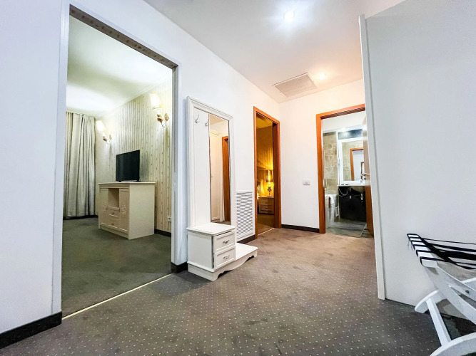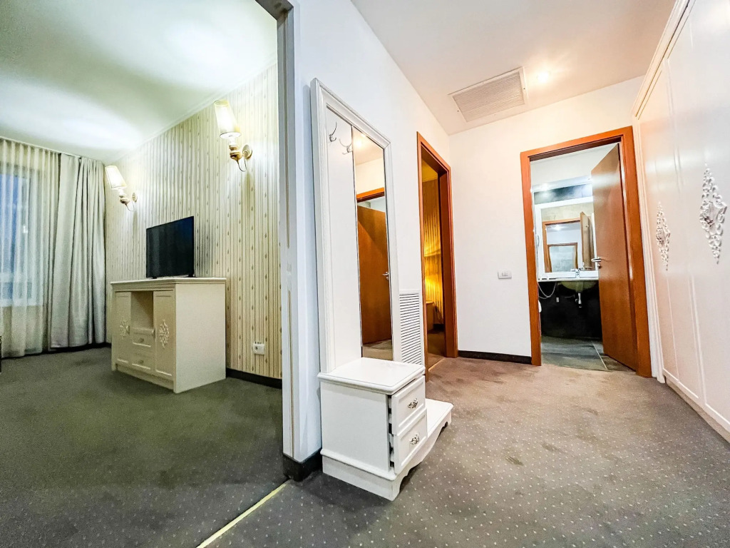В номере вас будут ждать телевизор, мини-бар, халат и тапочки. Перечисленные услуги есть не во всех номерах.