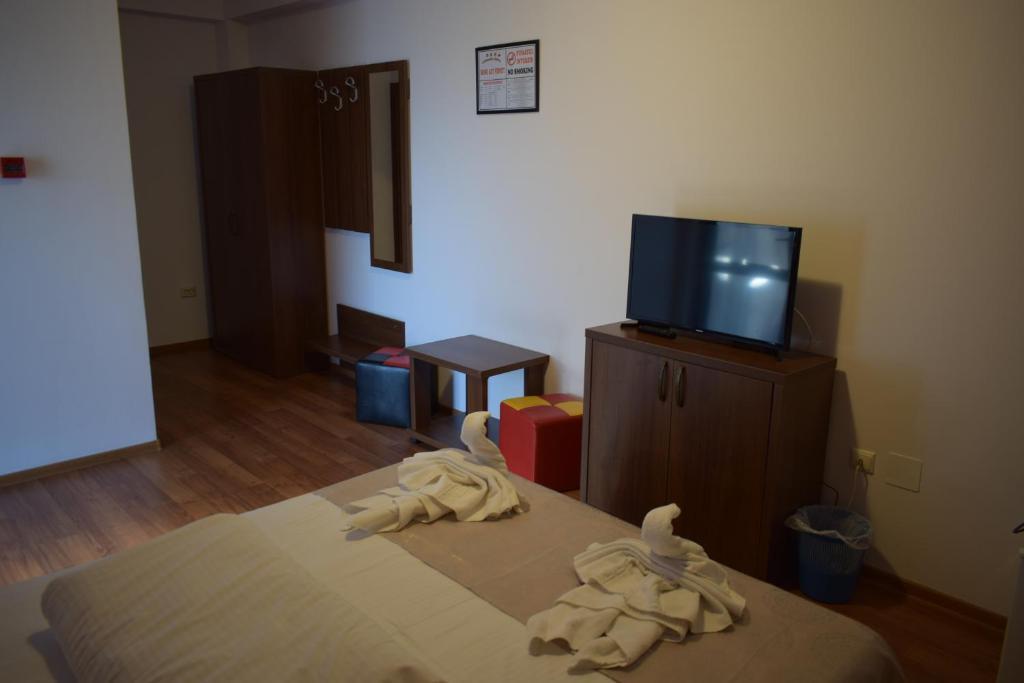 Номер уютно обставлен и оснащён необходимым, чтобы отдохнуть после долгого и насыщенного дня. Имеются телевизор. Оснащение зависит от выбранной категории номера.