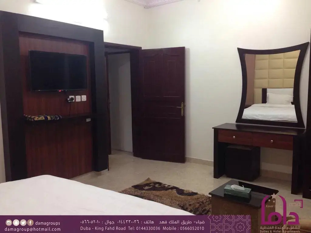 Отель Kasr Dama Furnished Apartments, адрес на карте Дуба, 4524 King Fahd, 49312 Ḑubā, Saudi Arabia, с характеристиками номеров и возможностью онлайн бронирования на ресурсе vashotel.ru , стоимость проживания и удобства.