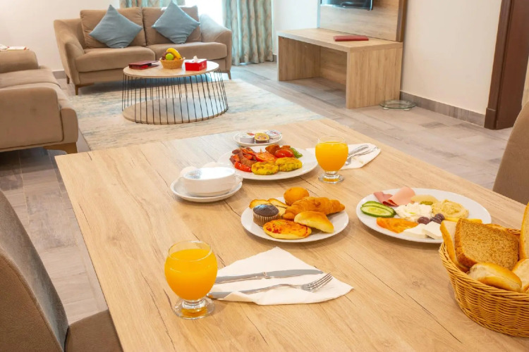 Отель Lafontaine Najd Suites, адрес на карте Джедда, Al Hamra'a District, Al Iskandariayyh Street, Al Hamra, 23212, Jeddah, Saudi Arabia, с описанием номеров и доступностью онлайн бронирования на ресурсе vashotel.ru , цены проживания и удобства.