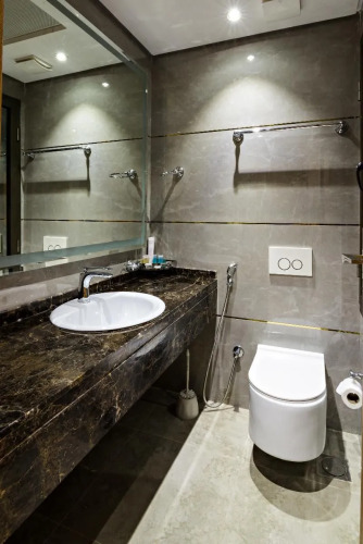 Номер уютно обставлен и оснащён необходимым, чтобы отдохнуть после долгого и насыщенного дня. Имеются душ и телевизор. Оснащение зависит от выбранной категории номера.