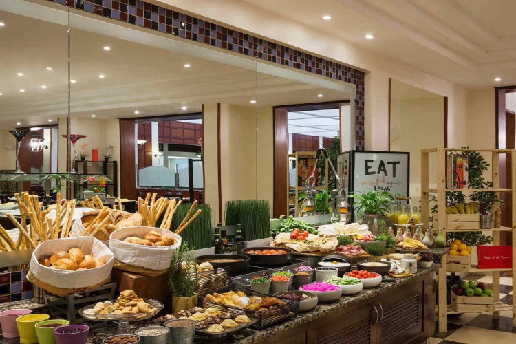 На территории отеля работают 2 ресторана и бар-гостиная. В ресторане Al-Diwan подают блюда ливанской, египетской кухни и морепродуктов. В ресторане Hokkaido предлагается японская кухня. Обслуживание номеров происходит круглосуточно.