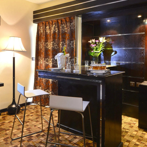 Номер уютно обставлен и оснащён необходимым, чтобы отдохнуть после долгого и насыщенного дня. Имеются душ, телевизор, мини-бар, халат и тапочки. Оснащение зависит от выбранной категории номера.
