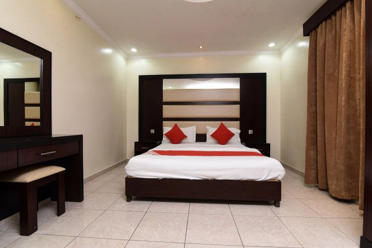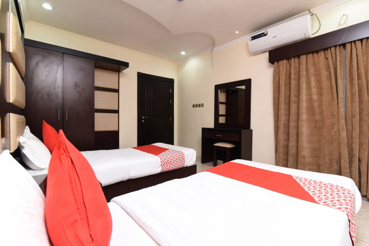 Отель Rahati Branch 1 by OYO Rooms, адрес на карте Эр-Рияд, Near Abu Abdullah Mosque Riyadh 14515, с характеристиками номеров и доступностью онлайн бронирования на площадке vashotel.ru , стоимость проживания и удобства.