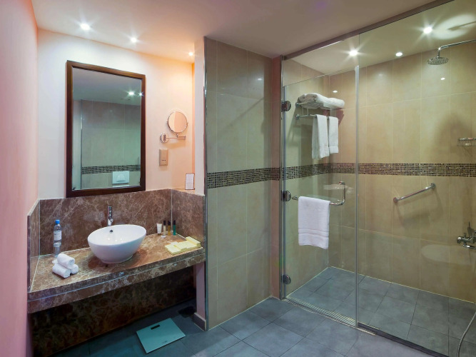 Номер уютно обставлен и оснащён необходимым, чтобы отдохнуть после долгого и насыщенного дня. Имеются душ, телевизор, мини-бар, халат и тапочки. Перечисленные услуги есть не во всех номерах.