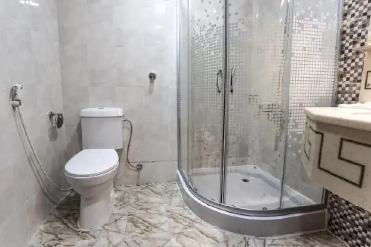 В номере вы найдёте душ, телевизор и тапочки. Оснащение зависит от выбранной категории номера.