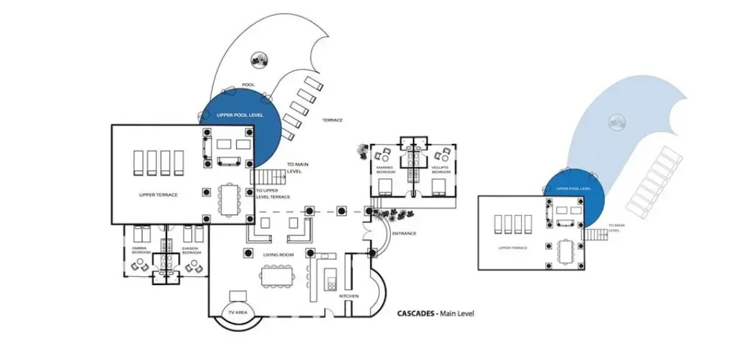 Экологичный и здоровый отдых начинается здесь. Вилла «Villa Cascades» находится в Ле-Тер-Басе. Эта вилла располагается неподалёку от центра города. Рядом с виллой — Plum Bay, Лонг Бич - Синт-Маартен и Cupecoy Beach.