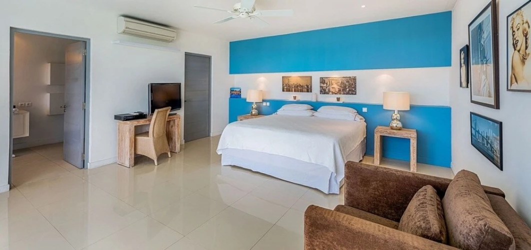 Экологичный и здоровый отдых начинается здесь. Вилла «Villa Grand Bleu» находится в Ле-Тер-Басе. Эта вилла располагается в центре города. Перед сном есть возможность прогуляться вдоль главных достопримечательностей. Рядом с виллой — Plum Bay, Лонг Бич - Синт-Маартен и Cupecoy Beach.