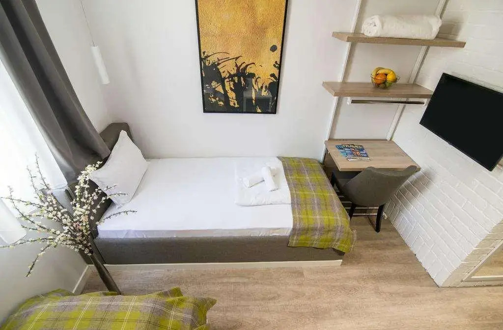 Номер уютно обставлен и оснащён необходимым, чтобы отдохнуть после долгого и насыщенного дня. Имеются телевизор. Оснащение зависит от выбранной категории номера.