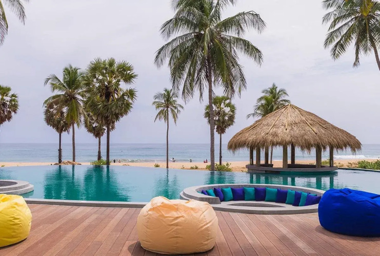 Из такого отеля на улицу можно вообще не выходить — отель «Jetwing Surf» находится в Аругаме. Этот отель расположен в 5 км от центра города.
