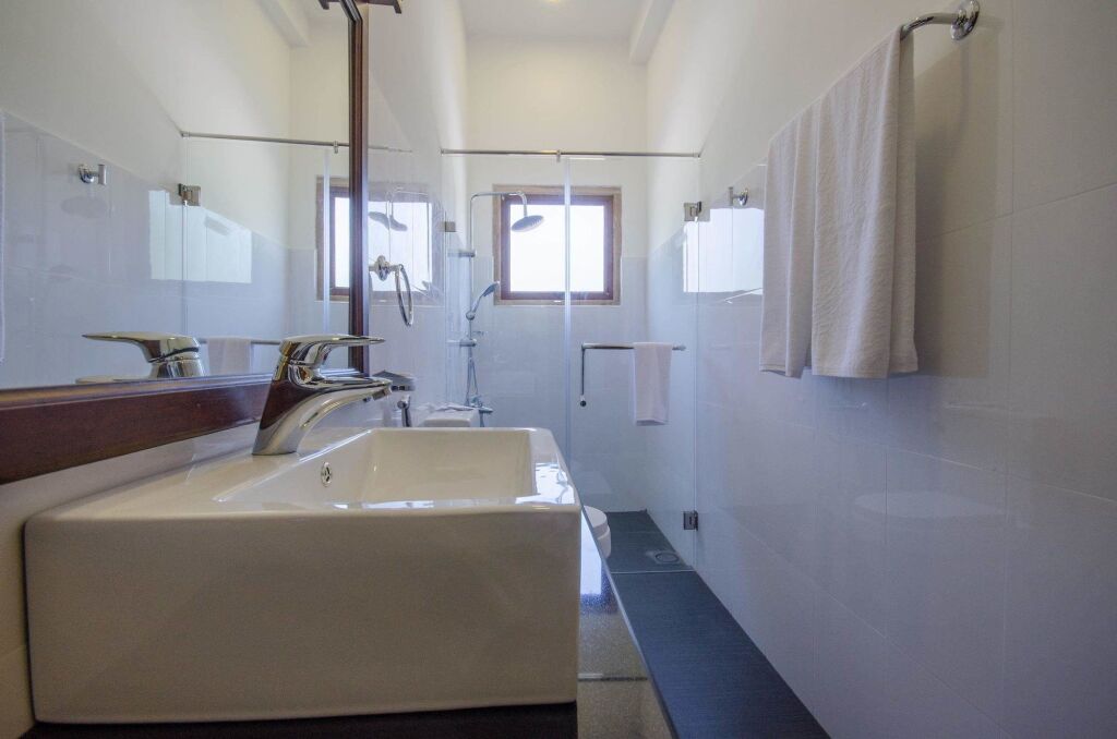 В номере вас будут ждать душ, телевизор и халат. Оснащение зависит от выбранной категории номера.