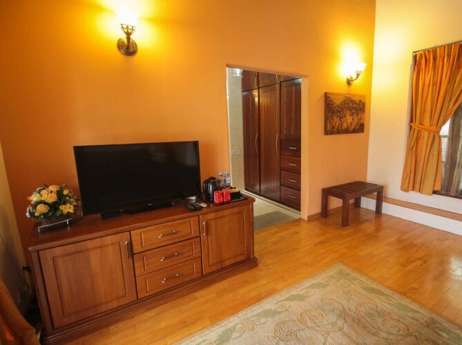 Номер уютно обставлен и оснащён необходимым, чтобы отдохнуть после долгого и насыщенного дня. Имеются телевизор. Перечисленные услуги есть не во всех номерах.