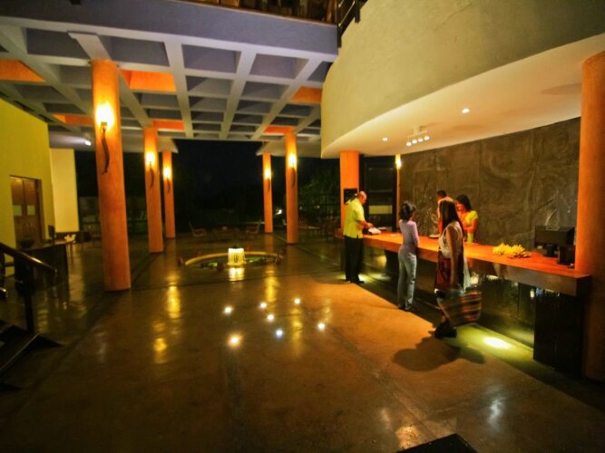 Из такого отеля на улицу можно вообще не выходить — отель «The Elephant Corridor Hotel» располагается в Сигирии. Этот отель находится в пешей доступности от центра города.
