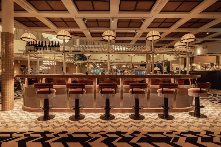 Social distancing measures are in place and guests are provided with hand sanitizer.