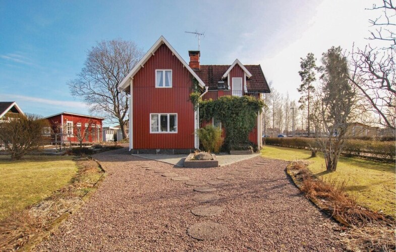 Отель Stunning Home in Hultsfred With 2 Bedrooms and Wifi, адрес на карте Хультсфред, Reveljstigen 1, с характеристиками номеров и возможностью онлайн бронирования на ресурсе vashotel.ru , стоимость проживания и удобства.