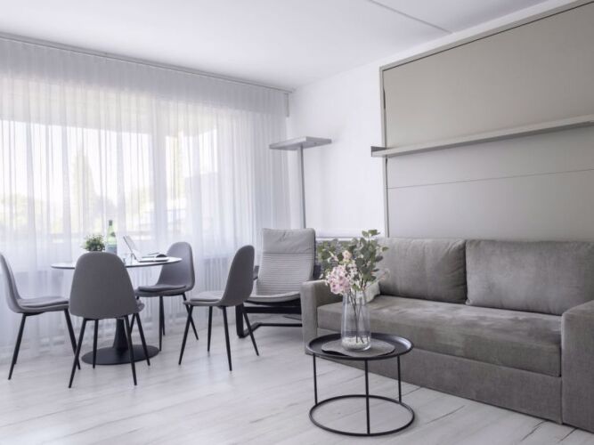 Номер уютно обставлен и оснащён необходимым, чтобы отдохнуть после долгого и насыщенного дня. Имеются телевизор. Оснащение зависит от выбранной категории номера.