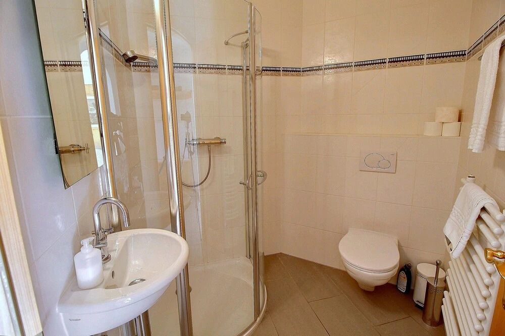 В номере вы найдёте душ и телевизор. Оснащение зависит от выбранной категории номера.