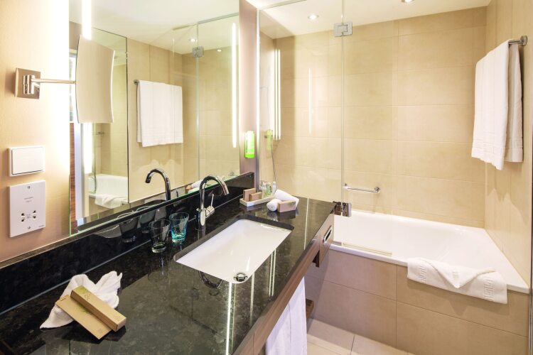 Вы можете забронировать в отеле Moevenpick Geneve один из 350 номеров. В номерах имеется чайник и мини-бар. В ванных комнатах есть фен. В номерах есть телевизор, телефон и кондиционер. По запросу предоставляются детские кроватки. Обслуживание номеров производится ежедневно.