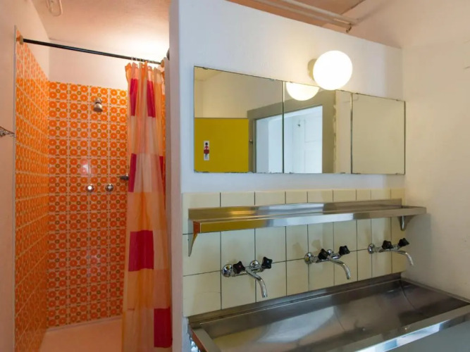 Гости 14-местного общего номера смешанного типа пользуются отдельными ванными комнатами для мужчин и женщин.