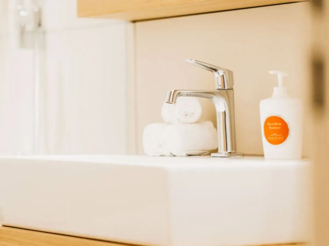 В номере вы найдёте душ и телевизор. Оснащение зависит от выбранной категории номера.