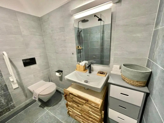 Удобно для гостей с ограниченными возможностями: на верхние этажи гостей поднимает лифт. А ещё в распоряжении гостей прачечная, сейф и консьерж.