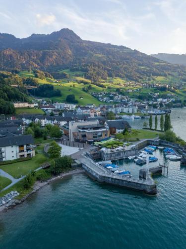 Отель Marina Walensee 3 звезды, адрес на карте Квартен, 20 Gostenstrasse, с описанием номеров и доступностью онлайн бронирования на сайте vashotel.ru , цены проживания и удобства.