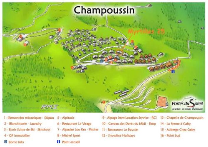 адрес на карте Валь-д'Илье, Rue Oméga, 1873 Champoussin, Switzerland, с описанием