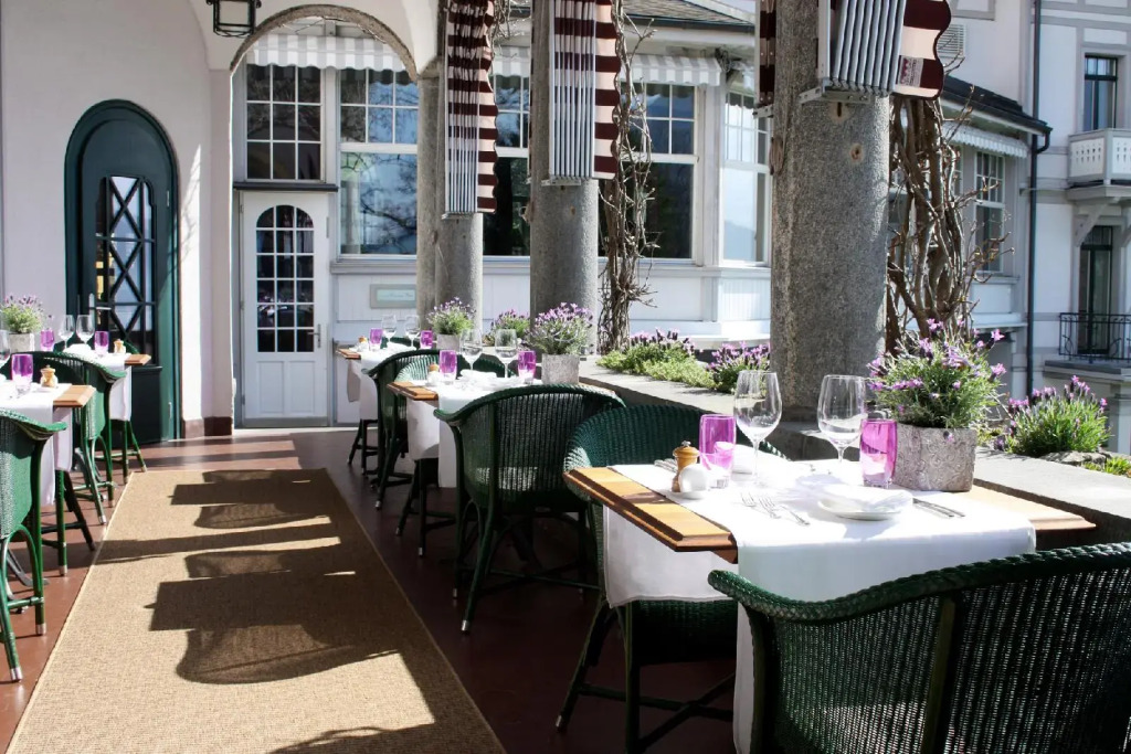 В отеле несколько изысканных ресторанов. Для роскошных трапез выбирайте ресторан отеля - Werris Park, с его средиземноморской кухней, залом, декорированным самим Версаче и посудой Королевского фарфорового завода в Берлине. Потрясающие блюда, приготовленные из рыбы, только утром купленной на рыбном рынке, можно попробовать в ресторане отеля- Sparks. Если вы хотите настоящей швейцарской кухни — вам прямая дорога в ресторан отеля- Central. Здесь изумительно готовят сыр фондю, раклеты, и рeсти.