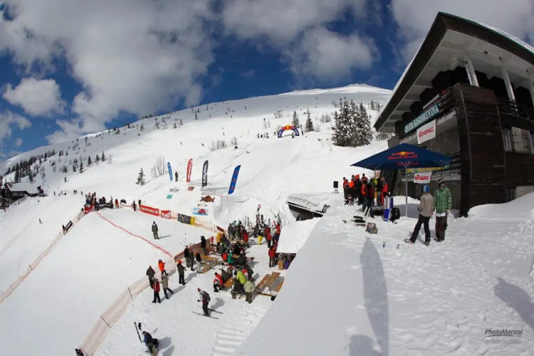 Въезд на лыжах на территорию отеля