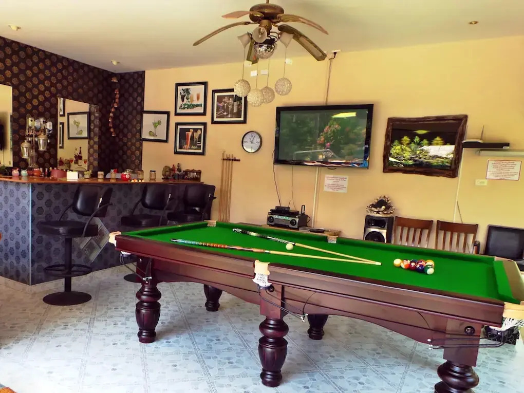 Если вы путешествуете на машине, припарковаться можно будет на парковке рядом. Среди услуг для красоты и здоровья — спа-центр. Готовьтесь к весёлому и насыщенному отдыху! На территории есть караоке, площадка для пикника и площадка для барбекю. Здесь будем баловать себя водными процедурами: есть открытый бассейн.