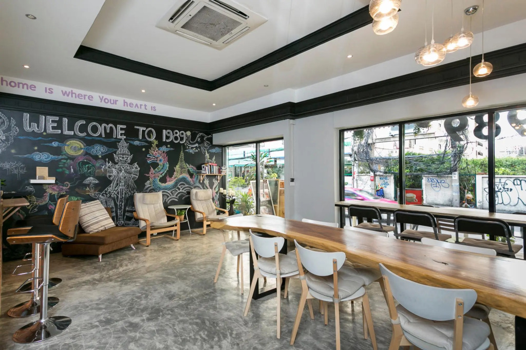 Отель 1989 Hostel & Cafe, адрес на карте Бангкок, 267/1 Sukhumvit Road Soi sukhumvit 22 klongton klong toey Bangkok 10110 tel 020652561, с характеристиками номеров и возможностью онлайн бронирования на площадке ВашОтель.RU , стоимость проживания и удобства.