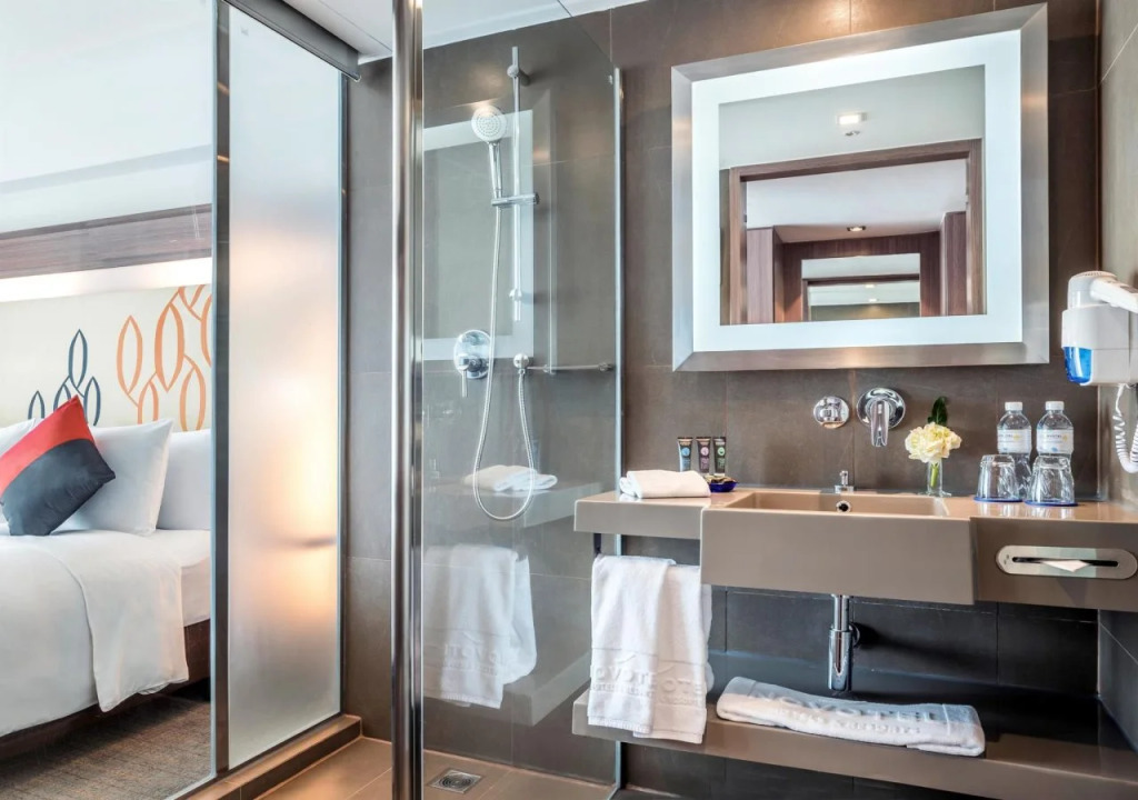 Номер обставлен и оснащён. Имеются душ, телевизор, мини-бар, халат и тапочки. Оснащение зависит от выбранной категории проживания.