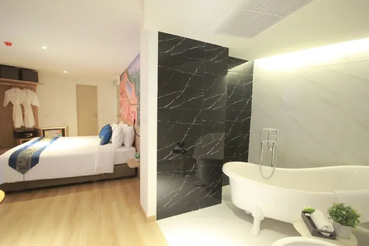 Номер уютно обставлен и оснащён необходимым, чтобы отдохнуть после долгого и насыщенного дня. Имеются душ, телевизор и тапочки. Оснащение зависит от выбранной категории номера.