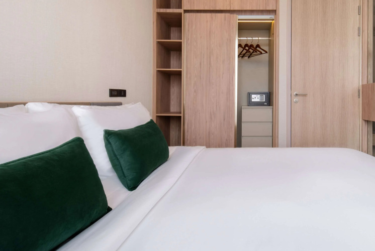 Можно организовать деловую встречу, переговоры и даже собеседование. Для этого предусмотрен конференц-зал. А ещё в распоряжении гостей химчистка, сейф и консьерж. Сотрудники отеля поддержат беседу на английском.