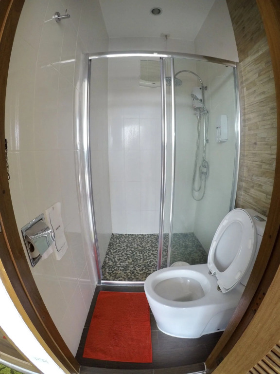 В номере вы найдёте душ, телевизор и тапочки. Оснащение зависит от выбранной категории номера.