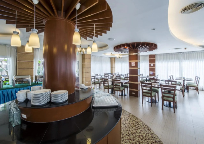 Ресторан 3-звездочного курортного отеля Kalim предлагает широкий выбор блюд азиатской, тайской и интернациональной кухни. В лаундж-баре и на террасе у бассейна можно отдохнуть за освежающим коктейлем.