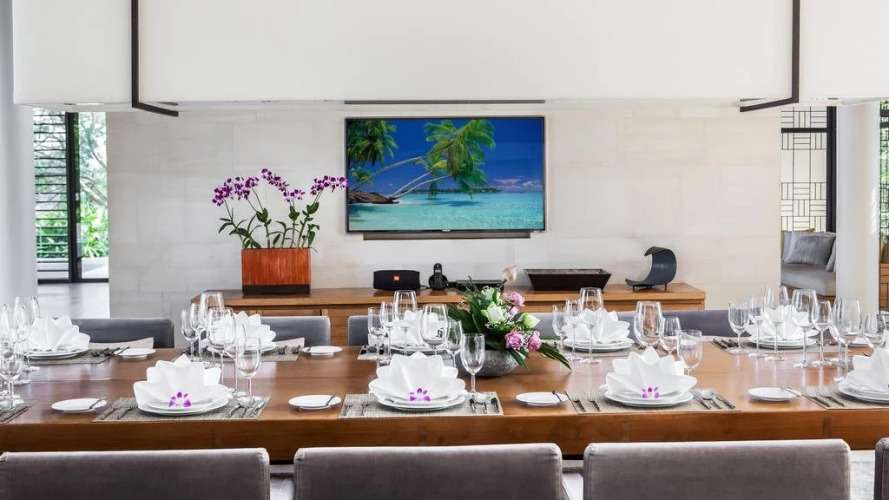 Также для гостей на вилле: массажный кабинет, спа-центр и врач. Спортивные гости оценят фитнес-центр, тренажёрный зал, настольный теннис и дайвинг. Среди развлечений на территории — библиотека, пинг-понг, площадка для пикника и площадка для барбекю. Для тех, кто не представляет отдых без водных удовольствий, есть бассейн, аквапарк и открытый бассейн.