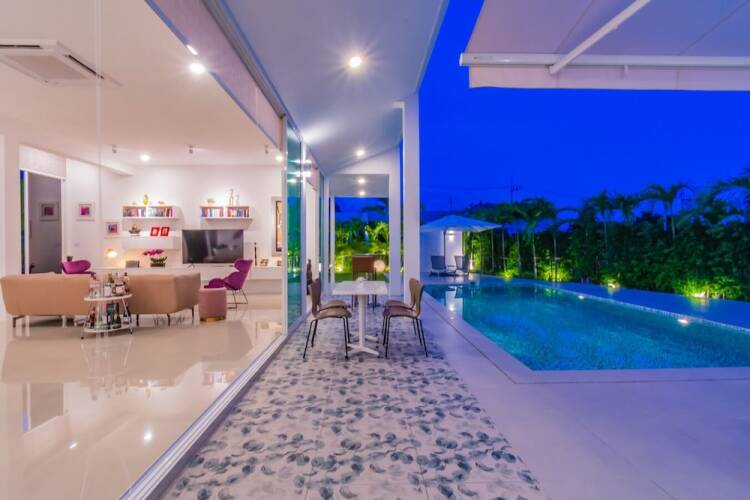 Отель Modern 2 Bedroom Pool Villa PMK-B1 3 звезды, адрес на карте Хуахин, Soi Hua-Hin 126, Alley, с описанием номеров и доступностью онлайн бронирования на сайте vashotel.ru , стоимость проживания и удобства.