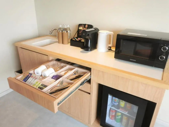 В номере вы найдёте тапочки. Оснащение зависит от выбранной категории номера.