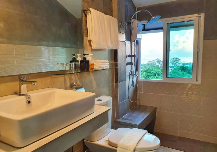 Номер уютно обставлен и оснащён необходимым, чтобы отдохнуть после долгого и насыщенного дня. Имеются душ и телевизор. Оснащение зависит от выбранной категории номера.