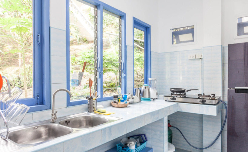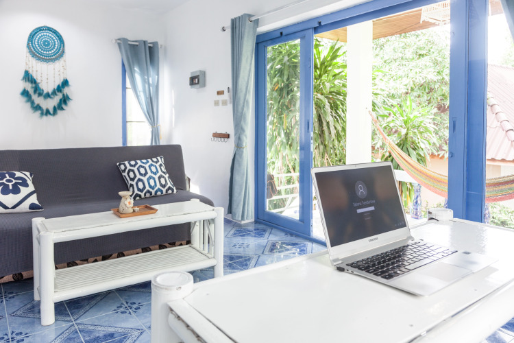 Бунгало оборудовано спальней двуспальной кроватью, раскладным диваном, кондиционером, Wi-Fi, ванной комнатой с душем и ванной, балконом и кухней. В распоряжении гостей есть: соль, перец, сахар, масло, гель для душа, шампунь и 2 рулона туалетной бумаги.