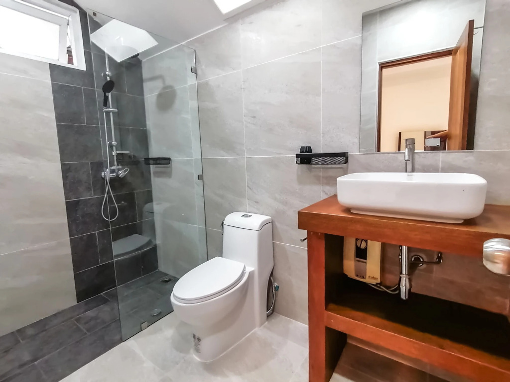 В номере вы найдёте душ. Оснащение зависит от выбранной категории номера.