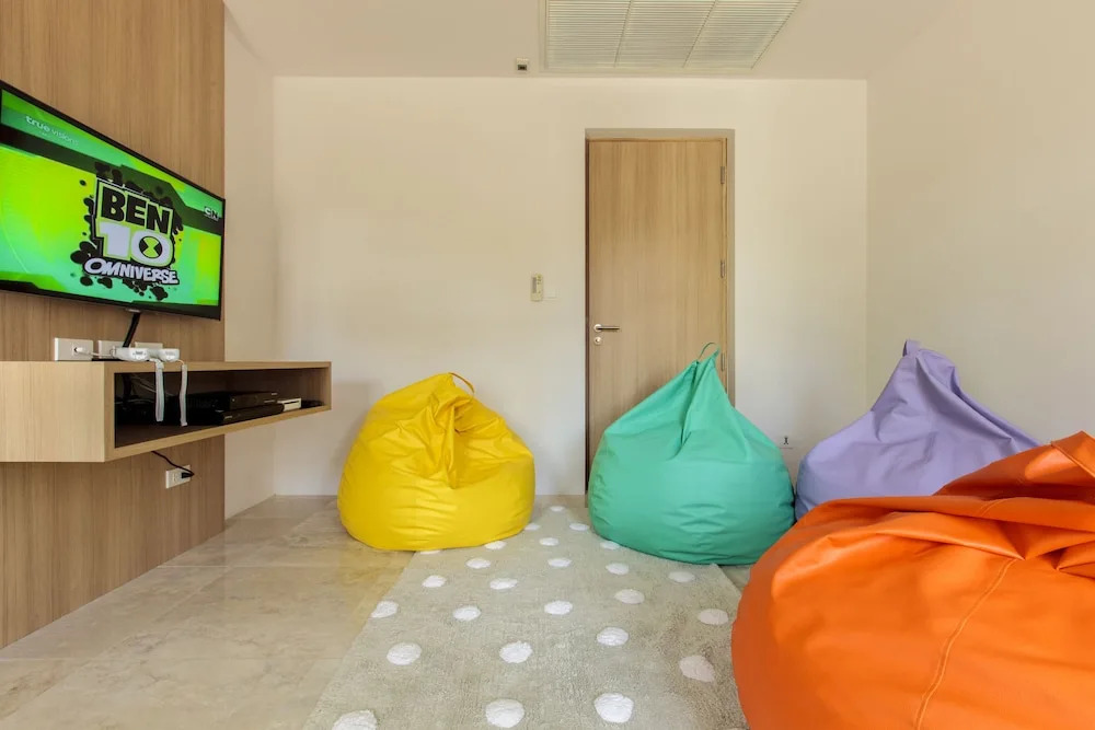 Скучно не будет, ведь на вилле к услугам отдыхающих боулинг и площадка для барбекю. Здесь будем баловать себя водными процедурами: есть бассейн, аквапарк и открытый бассейн. Сотрудники виллы по запросу организуют гостям трансфер. Удобно для гостей с ограниченными возможностями: на верхние этажи гостей поднимает лифт.