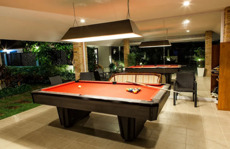 Среди услуг для красоты и здоровья — массажный кабинет. Любителям спорта подготовили фитнес-центр, тренажёрный зал и дайвинг. Скучно не будет, ведь на вилле к услугам отдыхающих площадка для барбекю. Здесь будем баловать себя водными процедурами: есть бассейн и открытый бассейн.