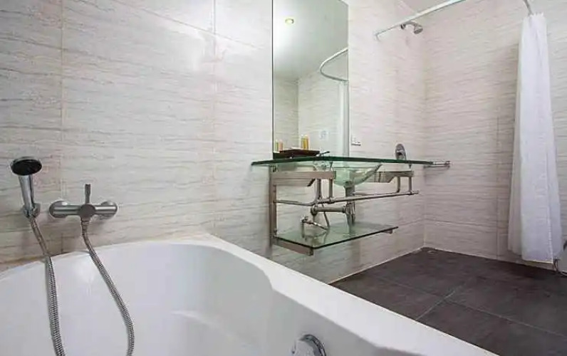В номере вы найдёте душ и телевизор. Оснащение зависит от выбранной категории номера.