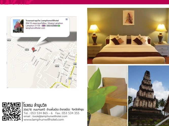 Сегодня Лампхун предлагает множество вариантов размещения. Так, вы можете забронировать отель в Лампхун бизнес-класса Отель Kaomai Lanna Resort, Отель Baannamping Riverside Village, Отель Marndadee Heritage River Village.