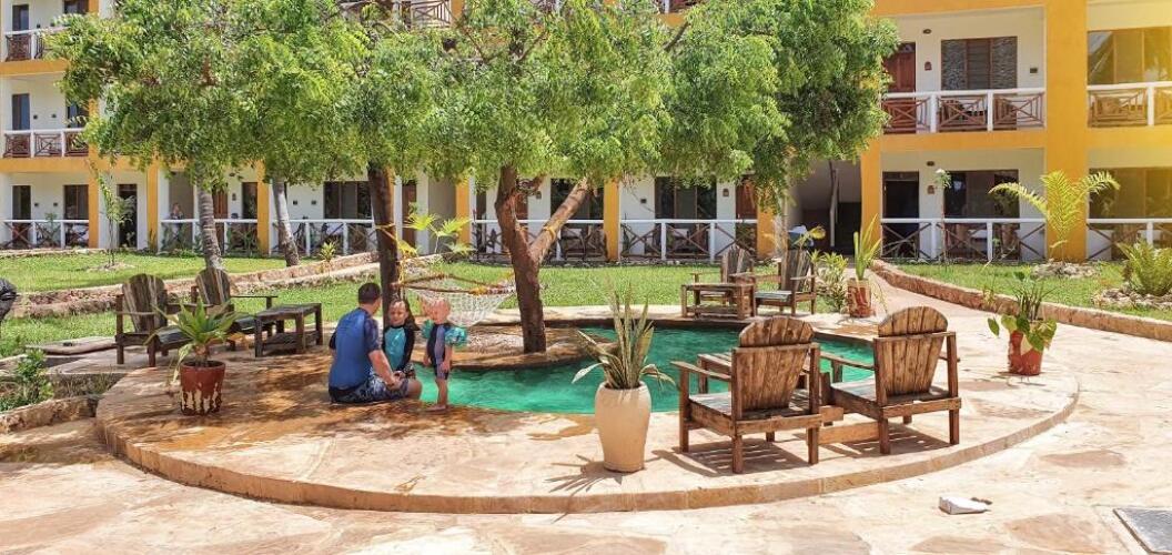 Здесь не придётся придумывать, куда пойти, — всё интересное уже есть рядом. Курорт «Reef & Beach Resort» расположен в Макундучи. Этот курорт находится в 5 км от центра города. Рядом с курортом — Пляж Jambiani Beach.